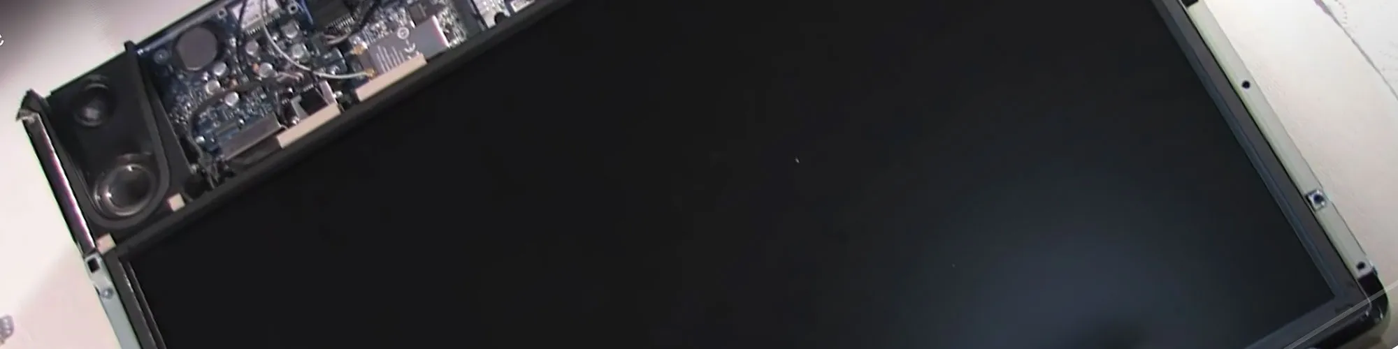 - Place the LCD panel flat on the chassis and reconnect the screen connector and refit the two small screws