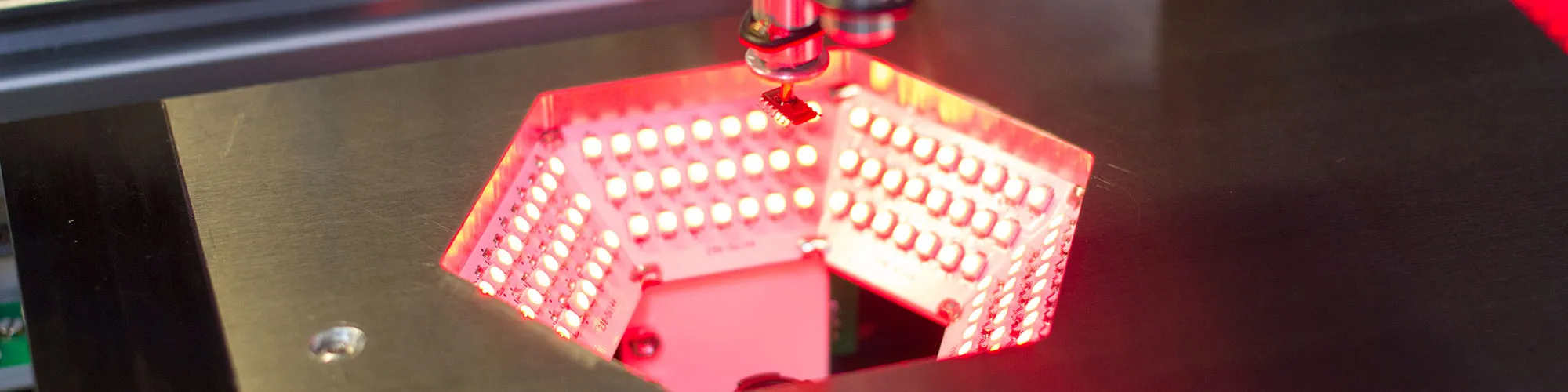 The PCBs arrived today for the LED array to go in the base of the Pick and Place system. The six boards hold a total of 144 red LEDs.
