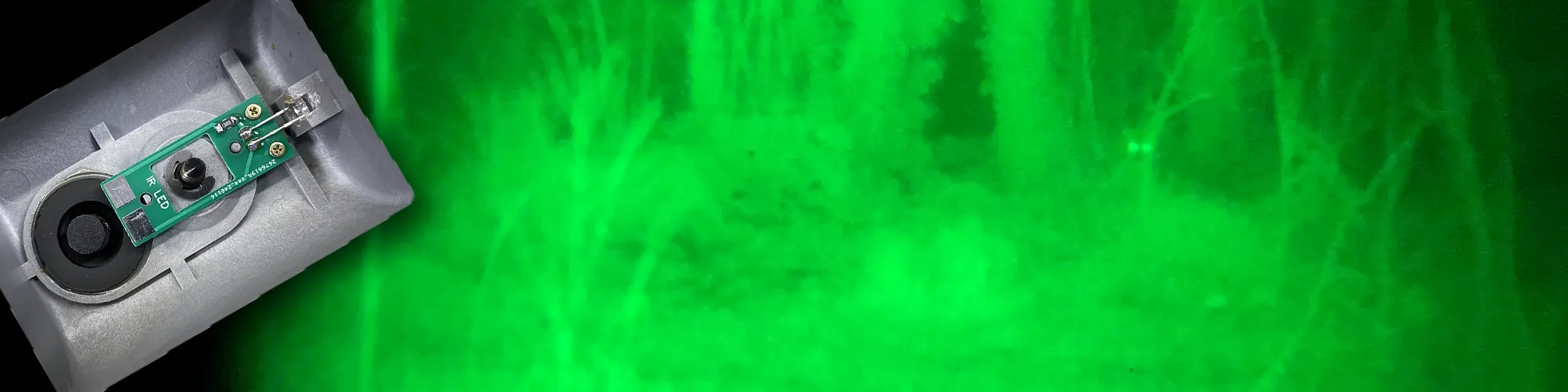 We also tried the night vision scope outside in a dark woodland with no external light. Without the infrared emitter it was possible to make out shapes in the dark but with the LED turned on the detail of the trees was much clearer, and the light also reflected off a nearby deer’s eyes making it very clear to see in the image.