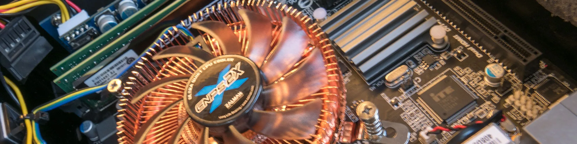 We found a low-profile copper heatsink from Zalman, model CNPS2X which is rated for up to a 120W CPU. We ordered the new heatsink from amazon and we also ordered a pair of quiet 40mm Noctua fans from QuietPC
