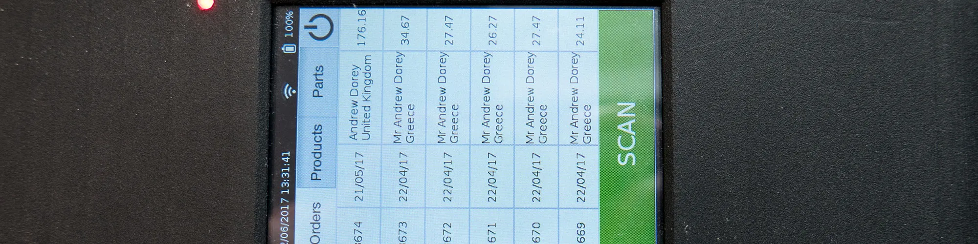 The software is designed to integrate into our e-commerce and inventory manager and has three main sections, orders, products and parts. A tab bar at the top of the screen allows you to select which section you want but when you scan a barcode it will automatically detect the type and put you into the correct section of the application.