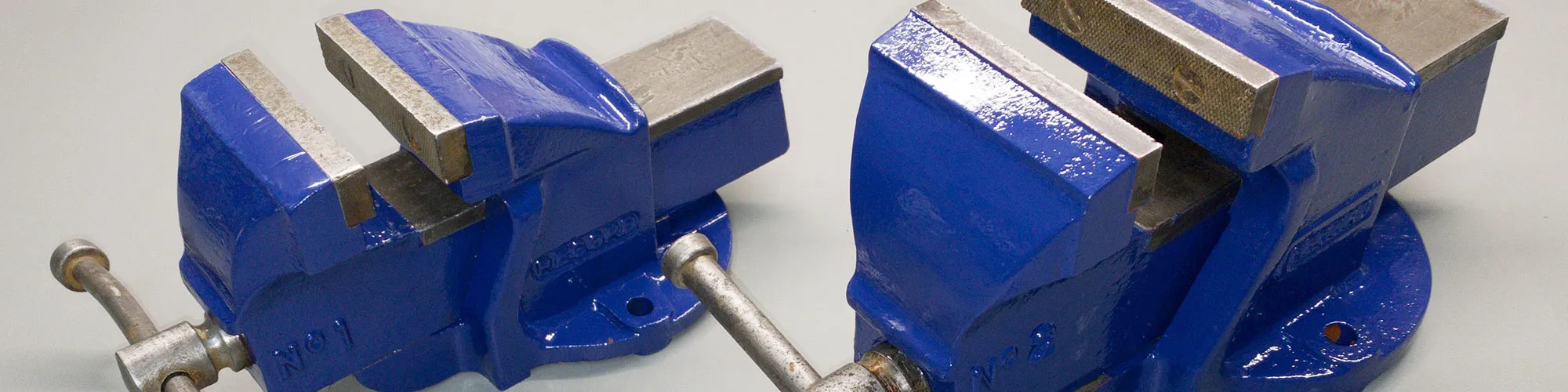 The vices are Record No 1 and No 2 models and are engineers' vices designed to be mounted onto a workbench or other strong surface.