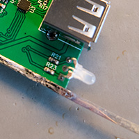 An LED on the front panel is used to show the status of the USB charger. When the charger is first connected to the 12V supply the LED glows red to show the charger is booting. Once the Bluetooth module is configured and advertising to any nearby clients the LED will flash green three times. When you plug a USB device into the charger the LED will glow green while the device is drawing more than 100mW and will go out when the power draw drops below this threshold to indicate that the device is charged.